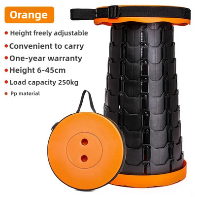Black and Orange Splicing Color Portable Outdoor Telescopic Folding Stool with 100 Weight-Bearing Buckles, Lightweight and Compact Design, Perfect for Fishing, Camping, and Travel