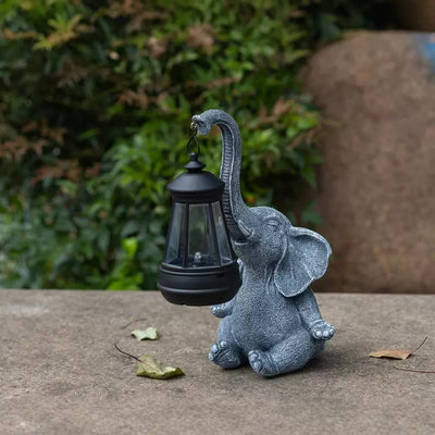Grey Meditating Elephant Solar Lantern Statue - Decorative Garden Light for Outdoor Spaces