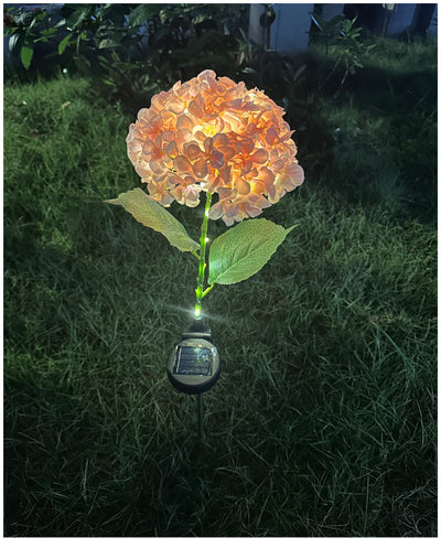 Light Pink Solar Powered Hydrangea Flower Stake Light - Realistic LED Garden Decor Lamp for Pathway Patio Yard