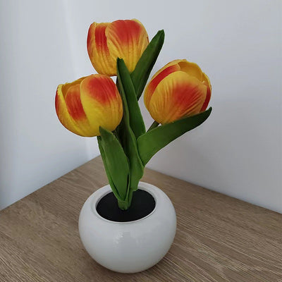 Orange Charging model Artificial Tulip Bouquet LED Light - Ceramic Pot Desk Lamp