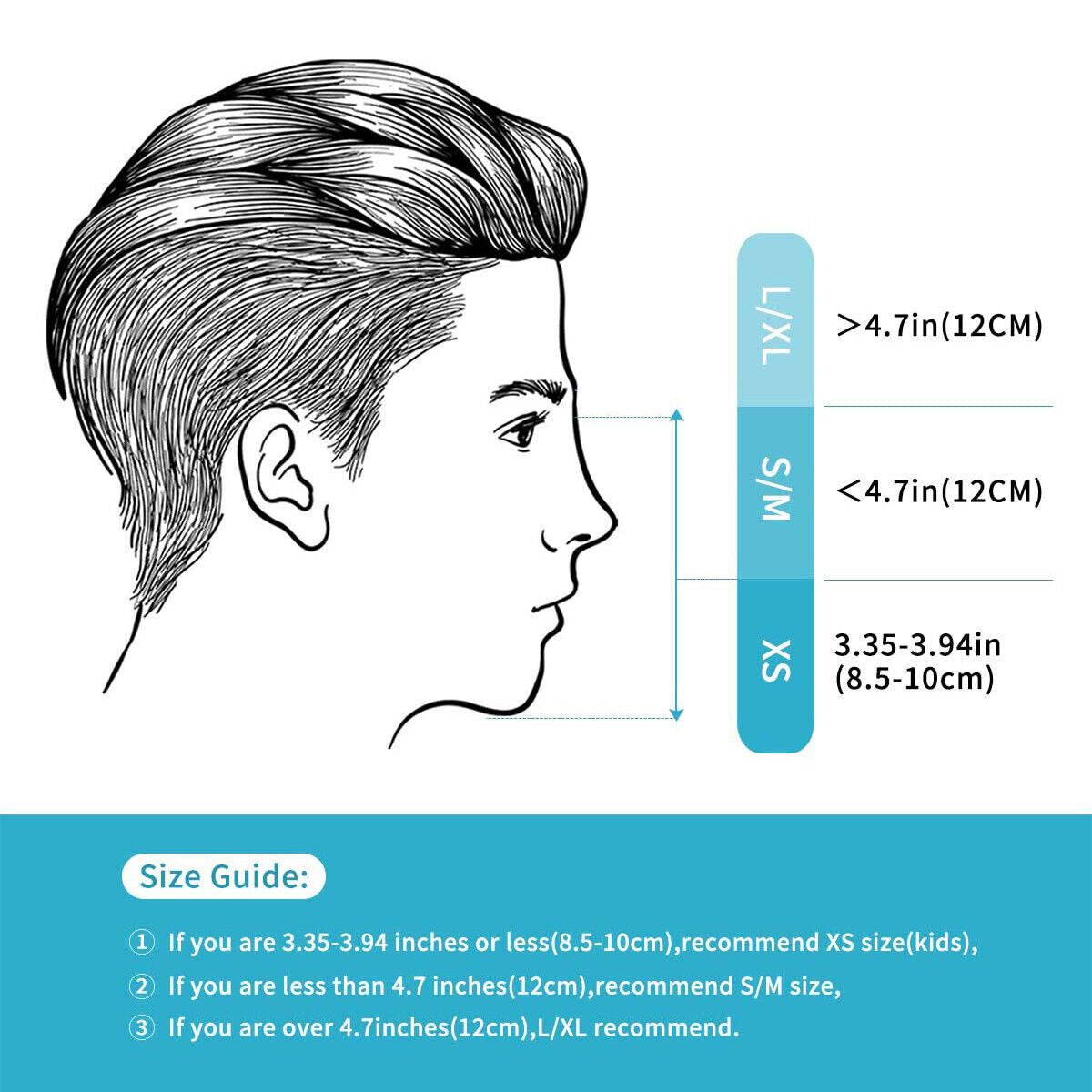 If you are over than 4.7 inches (12cm), recommend L size