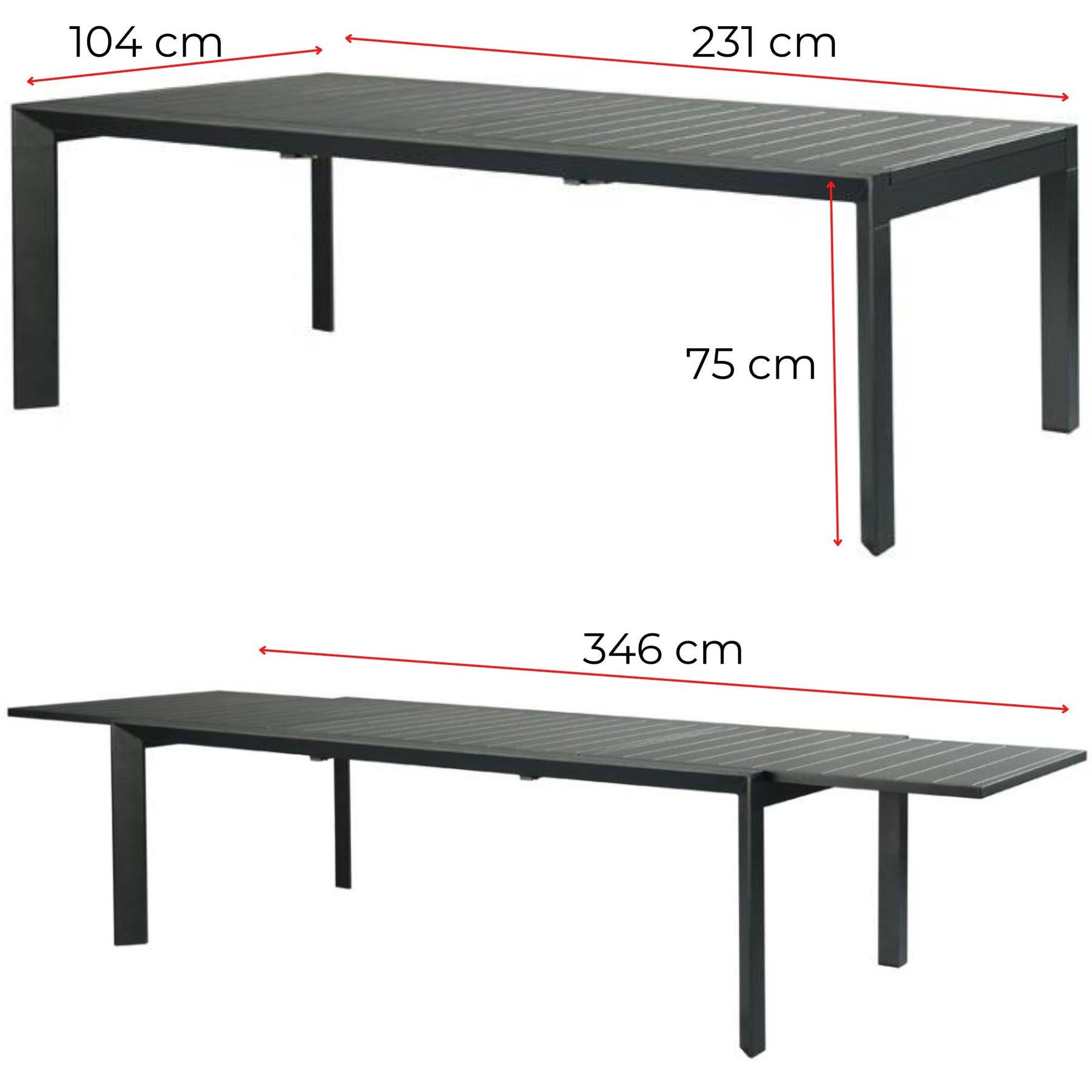Iberia 230-345cm Aluminium Outdoor Extensible Dining Table Charcoal
