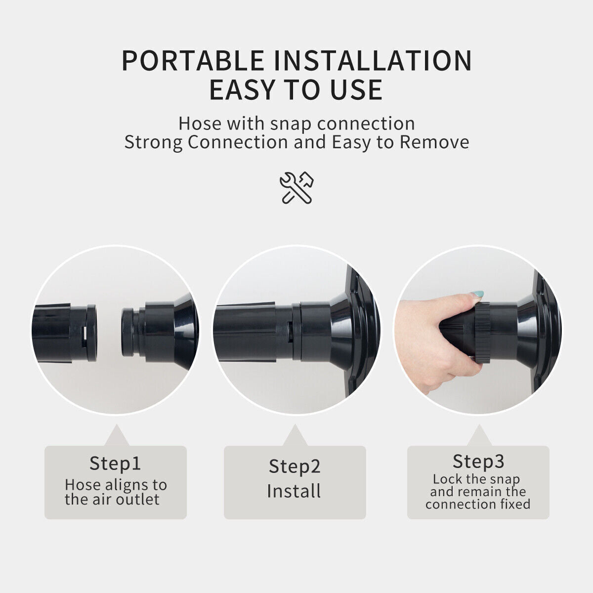 It is equipped with functions of stepless wind speed adjustment and 2-step heating temperature with an adjustable hose and 3 air outlets with different functions.