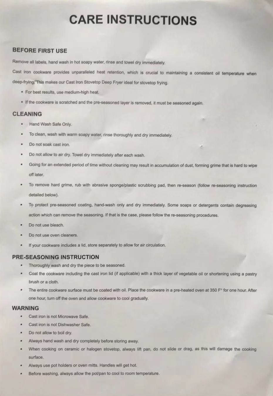 3. If there is water stain on the pot body after use, please dry and seal it to avoid rust.