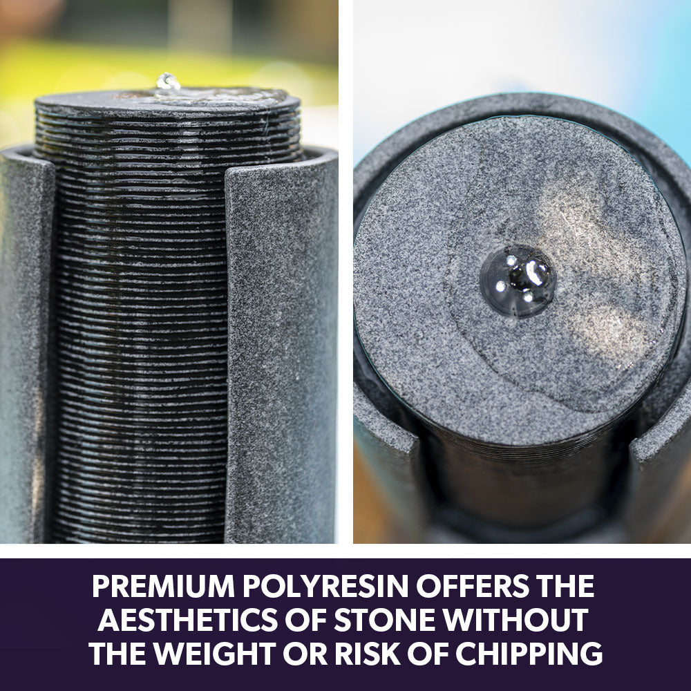 Create a beautiful calming zen ambience in any garden with this Contemporary Two Tone Tower Solar Powered Water Feature from Protege. This beautiful water fountain is crafted from premium weatherproof, non-corrosive polyresin, with intricate details that complement your alfresco space.