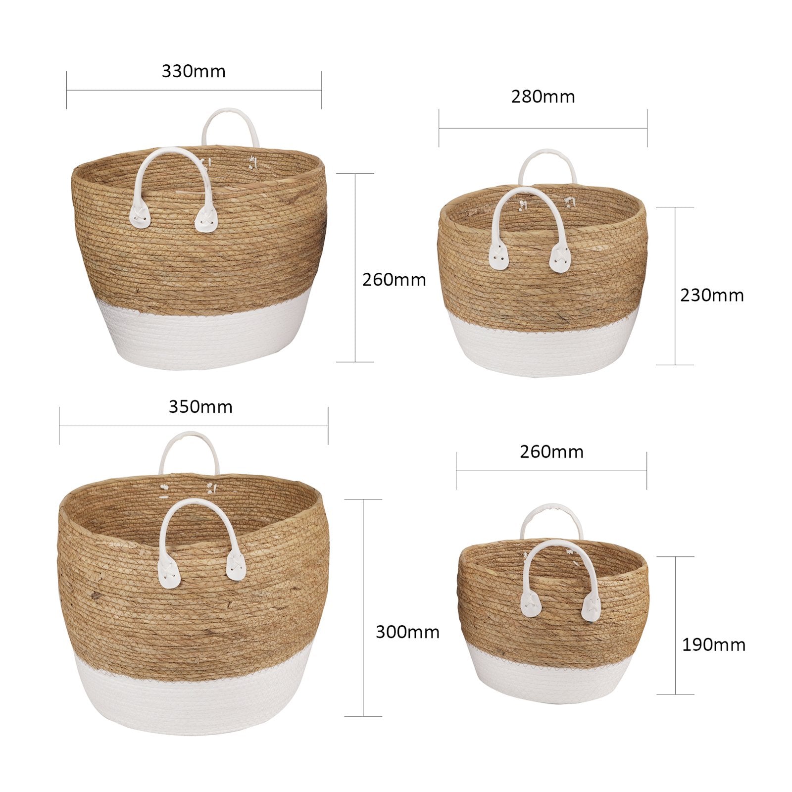 • Dimensions: 1 x small - 26x26x19cm,1 x small - 28x28x23cm , 1 x medium - 33x33x26cm , 1 x large - 35x35x30cm