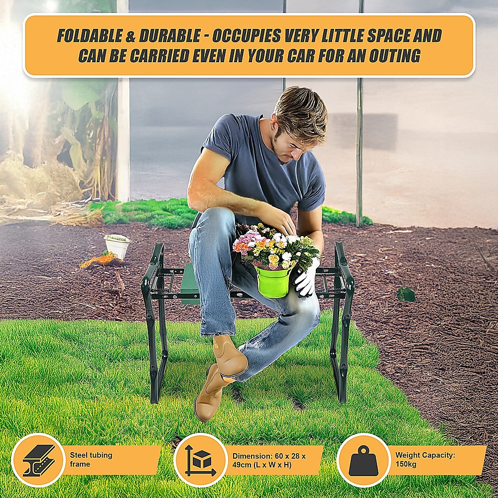 Constructed from high-quality steel tube, this garden kneeler and seat comes in a powder coated finish for durability and padded with EVA foam for immense comfort. What's more, the arm latches are well made and sturdy enough to support years of use. Its foldable design not only makes it convenient and easy to use, but also ensures easy storage. All in all, when you are busily involved in gardening, you just cannot go wrong with this helpful kneeler or comfortable seat!