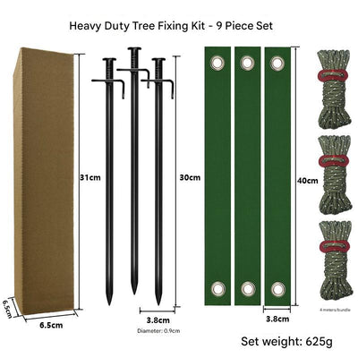 Silver Spike Heavy-Duty Tree Anchoring Kit - 9-Piece Set with Ground Stakes, Straps, and Ropes