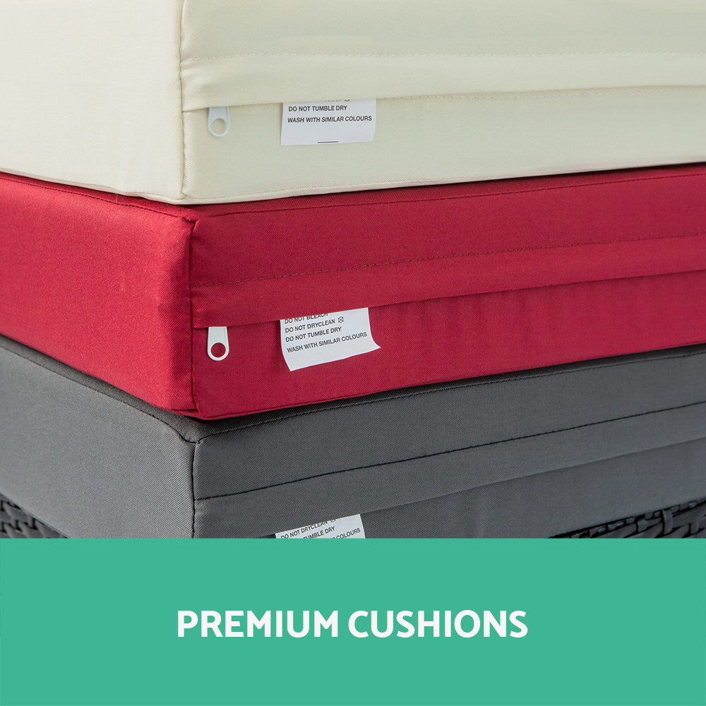 Flexibility. You can move the chairs around to create a whole new space. That's like giving a new look to your backyard whenever or wherever you want. Not least, the set is completed with a matching dining table with a tempered glass top. And as a bonus, you'll also receive all three red, grey and beige coloured seat covers at no extra cost. Three different coloured sofa sets for the price of one. Plus a waterproof storage cover. Making sure it's covered under any weather situation.And relax and chill on our Hayman 13-piece Dining Set for the rest of the day.