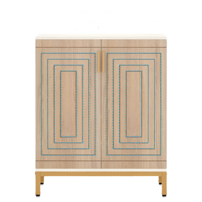NNETMLT 5-Tier Shoe Cabinet with Geometric Pattern Doors-White/Natural