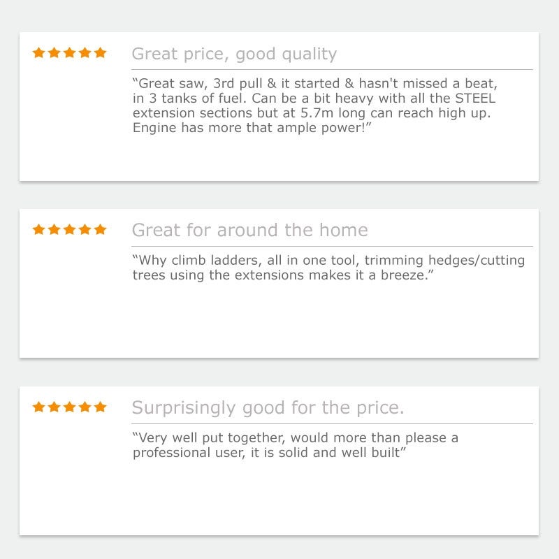 - 2 extension shafts for additional reach with both chainsaw and hedge trimmer attachments