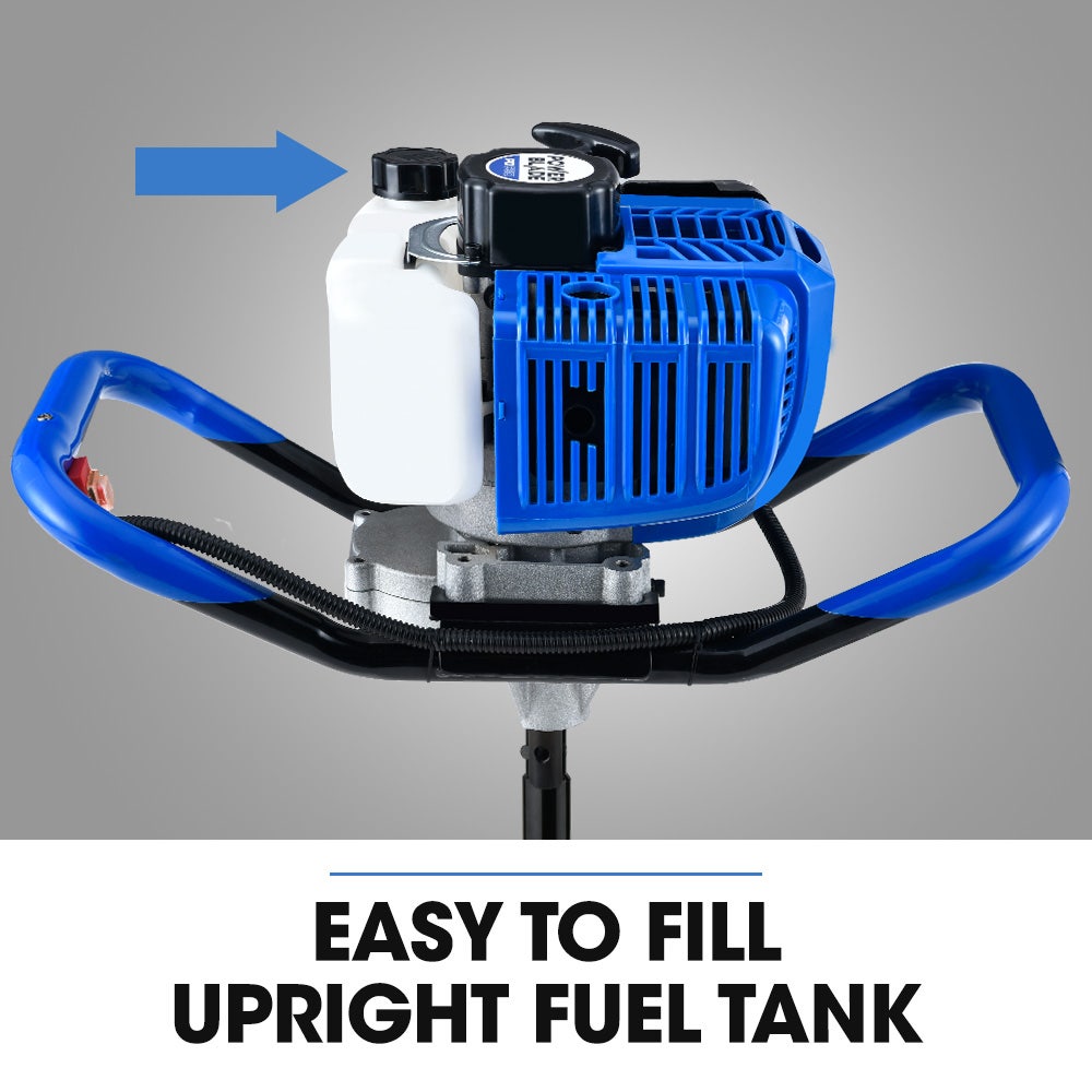 Introducing the PowerBlade PD750 2 Stroke 52cc Petrol Post Hole Digger - built to handle even the toughest digging tasks. With its high torque and easy-start 52cc engine, the PD750 delivers maximum power and efficiency. The anti-vibration vertical alignment ensures comfort and precision during operation, making it a breeze to use.